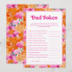 Divirta-se no chá de bebê com este cartão de jogo divertido, apresentando vibrantes detalhes florais rosa e laranja e personalizáveis. Personalize com facilidade utilizando as opções "personalizar" e "editar usando a ferramenta de design".