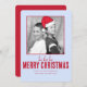 Feliz Natal, Cartão de Saudação Foto de Santa Hat. Santa Hat pode ser movido para ajustado da foto, ou duplicado. Esta design apresenta Natal Natal Pai Natal amovível, fotografia familiar 1 uma, divertida e engraçada edição engraçada e engraçada, um simples azul-branco minimalista, letra de tipografia caprichosa, texto de um roteiro de caligrafia de na moda, ho ho ho merry Natal, cartões de saudação de fotos de Natal, Papais noeis bonitinhos do norte, desenho animado com o chapéu do Papai Noel