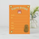 Adorável convite de aniversário para animar sua festa. Sobre um fundo laranja, a design começa do topo com Happy Birthday em texto verde e amarelo com um bolo com gelo cor-de-rosa e três velas acesas ao lado do H em feliz. Abaixo do texto está uma bonita e engraçada batata marrom feliz com braços de palitos e um sorriso grande. Por toda a batateira há um banner azul com um modelo para adicionar seu nome para personalizar. Finalmente, três estrelas amarelas estão pontilhadas em volta da batata. Ao contrário, há espaços para os detalhes de sua festa.