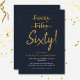 Comemore seu aniversário de 60 anos em estilo e um tom de humor. Num fundo azul marinho, a tipografia dourada no topo tem 40 e 50 riscados com uma linha dourada e, abaixo na letra da escrita, 60. Abaixo, numa mistura de tipografia em ouro e branco, você pode personalizar com seus próprios detalhes. Única e perfeita para as grandes comemorações de aniversário!