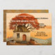 Convite de festas divertido para o lar, com uma pintura moderna de arte de uma casa com árvore ao estilo caprichoso.