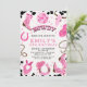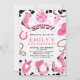 Gêmeos Disco Rosa Quente Moderno Gêmeos Cowboys Aniversário Convite Colorido Rosa Quente, Oeste, vaqueira qualquer convite de aniversário para uma rapariga gêmea com uma bola de disco, chapéu de vaquinha, botas de vaqueira, esmalte, impressão de vaca e muito mais. A palavra howdy é parte da imagem e não pode ser alterada.