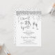Convite de aniversário de casamento de 25 anos. Brinde a 25 Anos! Design elegante em branco e prata. Apresenta taças de champanhe, fonte de letra script e confetes. Perfeito para uma celebração sofisticada de 25 anos de casamento. Convites Zazzle impressos ou modelo digital para download instantâneo. Pode ser personalizado para mostrar qualquer ano! Personalize com seus próprios detalhes.