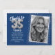 Celebre os 35 anos com estilo com nossos convites de festa de aniversário sofisticados. Projetados com um fundo azul elegante, personalizáveis para qualquer tonalidade de sua escolha, esses convites apresentam um sutil acento de brilho prateado falso, balões de hélio prateados e um espaço para uma foto querida. O modelo de texto de celebração de aniversário de 35 anos moderno é fácil de personalizar, garantindo que a celebração do seu aniversário marcante comece de forma memorável.