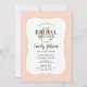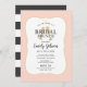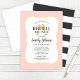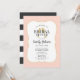 Vamos para a noiva! O design de convite de brunch de chá de panela de casamento apresenta cores douradas em champanhe / flautas de vidro mimosa com texto preto suave que pode ser totalmente personalizado para o seu evento. Um quadro decorativo cor-de-rosa-pincel (pode ser personalizado) envolve o convite e um padrão de extensas faixas brancas e pretas e suaves horizontais se vestem na parte traseira do cartão.