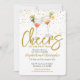 Um convite de Ano Novo 'brindes ao Ano Novo' maravilhoso. Este convite fabuloso apresenta copos de coquetel aquarela em um fundo de confetes dourados. Fácil de personalizar com os detalhes da sua festa de Ano Novo.