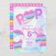 Convite de aniversário unicórnio arco-íris com brinquedo antiestresse bolhas roxo rosa pastel para festa de menina.