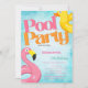 Esses convites apresentam flamingos em fundo azul. Este convite é facilmente personalizado para o seu evento simplesmente adicionando os seus detalhes.
