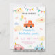 Convites Brinquedos ilustrativos de carro, brancos e laranj