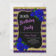 Púrpura elegante e listras douradas brilham e convites de aniversário azuis profundos para mulheres de qualquer idade. A idade pode ser alterada para qualquer idade. O texto pode ser alterado para qualquer coisa para ajustado do seu evento. Fontes, cor da fonte e texto são completamente personalizáveis! A forma e o tipo do papel podem ser personalizados para ajustado do seu orçamento e sabor!