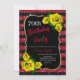 As listras vermelhas e pretas elegantes brilham e as rosas amarelas convites de aniversário para mulheres de qualquer idade. A idade pode ser alterada para qualquer idade. O texto pode ser alterado para qualquer coisa para ajustado do seu evento. Fontes, cor da fonte e texto são completamente personalizáveis! A forma e o tipo do papel podem ser personalizados para ajustado do seu orçamento e sabor!