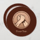 Medalha redonda de bronze com duas mãos em luta de braço.