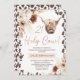 Brown Boho Floral Santa Vaca Highland aniversário de 21 anos Convite Vossa Altura Suça Vaca Suce Highland Convite para o aniversário temático num estilo boêmio que inclui dois tons naturais boho arranjos florais, padrão de impressão de vaca castanha e uma vaca Highland. Este convite para aniversário de 21 anos de boho floral sagrado pode ser alterado para se adequar a qualquer idade.