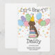 Faça o seu aniversário do Mastiff Neapolitano Brown com nosso adorável design com um chapéu de festa e balões coloridos. Personalize este convite de aniversário divertido com o nome e a idade do seu cão para uma celebração de malabarismo!