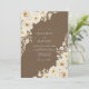 This design features a warm, romantic atmosphere with creamy white roses and delicate foliage artfully arranged. The earthy brown background provides a sophisticated and intimate feel. A perfect choice for an elegant autumn or rustic-themed event.