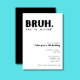 Engraçado convite de aniversário para crianças legal e mais velhas. "Bruh, você é convidado" citação sem imagens, apenas texto. Design branco e preto clássico.