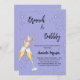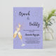 Um convite moderno, na moda e glamouroso para um Chá de panela de bolinho. Um fundo azul empoeirado com bolhas, um par de flautas, óculos. O nome é escrito com um moderno estilo escrito à mão. Personalize e adicione os detalhes da sua festa.