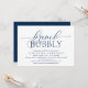 Placa de convite de festas de Chá de panela de Script Azul de Marinho Elegante (Brunch Bubble) moderno. Convide os convidados com este Cartão de Convite perfeito. É muito fácil adicionar/ editar com os detalhes da sua parte no chá de panela.
