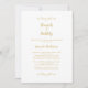 Elegante convite de chá de noiva para casamento com design clássico formal tradicional atemporal, com brunch romântico e tons dourados e branco. O acabamento sem bordas permite que você escolha facilmente o formato de papel favorito para o visual final. Um fundo transparente permite que a beleza da sua escolha de papel seja apreciada na frente e no verso do cartão. Dois floreios decorativos, cada um contendo um único coração, embelezam a escrita. Personalize com seus detalhes em letras e escrita delicadas. Para obter resultados ótimos, substitua os detalhes do modelo pelos seus próprios detalhes, deixando espaço entre os parágrafos como no exemplo, e capitalize onde especificado ou se a palavra for um substantivo próprio e normalmente capitalizado. Envie um e-mail para invitationsuites@gmail.com com perguntas ou solicitações de cores personalizadas.