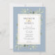 Apresentando delicadas folhas verde-aquáticas e óculos de champanhe, este chá de panela chic brunch e borbulhante pode ser personalizado com suas informações especiais sobre o evento de celebração, com um fundo azul empoeirado no verso. Projetado por Thisnotme©
