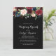 Este convite de brunch botânico preto rústico é perfeito para uma família e amigos simples dia depois do casamento se juntarem. A design apresenta flores brilhantes, vermelhas, marinhos, azuis e esbranquiçadas radiantes e graciosas pintadas à mão num fundo preto, inspirando beleza natural.