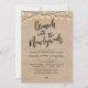 Planejar feliz para sempre depois da celebração do brunch, depois do dia do seu casamento? Convide seus amados convidados com este tema "brunch with the newlyweds" (brunch com as recém-casadas), no moderno design de script rústico (madeira castanho de campo, fundo das luzes de cordas), indicando a data, hora, local e detalhes de RSVP.