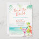 Bebida Tropical Beaches Beach Bridal Brunch Invitation com facilidade de personalização de campos de modelo. Linda, aquarela tropical e folhas de palma com deliciosos cocktails de aquarela em rosa, verde e laranja, com limões, limões e guarda-chuvas de rico. O chá de panela perfeito para bruxas e festividades de noivas tropicais.