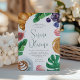 Convide convidados para um belo brunch de chá de panela de verão com estes belos convites para aquarelas. A design apresenta os detalhes de sua celebração em caracteres modernos, rodeados por ilustrações de pastores do café da manhã, croissants, macarons, café e verde tropical exuberante com folhas de banana e folha de monstera.