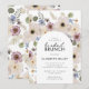 Chique, moderno e perfeito para casamentos de primavera e verão. Este convite de chá de panela de noiva apresenta flores em aquarela boho chic pintadas à mão em tons de creme, marfim, verde sage, burgundy e azul poeirento em torno de uma moldura de arco elegante. O verso inclui um padrão caprichoso correspondente. Encontre produtos adicionais na Coleção de Casamento Floral Boho Chic Moderna.