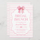 Convite Brunch de Chá de panela Rosa. Listras cor-de-rosa e design arco cor-de-rosa coquete. Chá de panela adorável para a futura noiva. Vintage, preppy, e a menina feminina vibe perfeito para sua celebração especial de chá de panela.