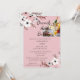 Esta imagem mostra um convite para uma festa de chá de noiva com fundo rosa e desenho floral. O convite é para uma festa de chá de noiva em homenagem a Annabella Ford. O evento está programado para 10 de julho às duas da tarde no The Pavillion Restaurant, localizado na Rua Asteron 2385, Jackson, MH.