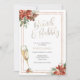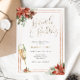 Convite Bridal Brunch com flauta de champanhe de ouro, estrutura de ouro e poinsettias, verde permanente com eucalipto. Personalize com suas informações e personalize para seu evento!