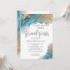 Chá de panela de Brunch e Bubble com elegante arte de tinta a álcool e design de pintura a aquarela em tons de lacre, azul turquesa e bronze com textura falsa de ouro, acentuado com caligrafia de estilo manuscrito. Use nossa modelo fácil de personalizar para personalizar com seus detalhes - uma garrafa de espuma com rolha no fundo Design de atordoamento © by WhimsicalArtwork™ Esta é parte de um Conjunto de Artigos de Casamento com casamento, chá de fraldas e outros artigos de papelaria de eventos.