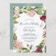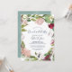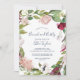 Este convite de brunch e bubbly brisa tropical é perfeito para um chá de noiva elegante de primavera ou verão. O design floral apresenta flores vermelhas, burgundy, rosa e branco em uma coroa de folhagem tropical em aquarela com um clima relaxado havaiano.
