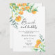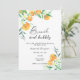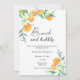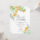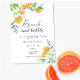 Chá de panela temático dos citros de aquarela com ilustração aquosa das laranjas em um galho de árvore. Manuscrito caligráfico elegante, perfeito para primavera, verão ou casamentos de outono. Itens correspondentes disponíveis.