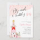 Celebrar a noiva com este chá de panela cor-de-água rosa com uma garrafa de champanhe com buquê floral e óculos de champanhe.
