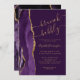 A borda esquerda deste elegante e moderno brunch e chá de panela borbulhante apresenta uma cor d'água púrpura e borda agitada com falso brilho dourado. O texto personalizável combina manuscrito dourado, fontes em copperplate e itálico em um fundo de ameixa. O verso apresenta um design de agate roxo e dourado correspondente.