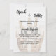 Um convite moderno, na moda e glamouroso para um Chá de panela de bolinho. Fundo branco, decorado com uma cesta com flautas e frascos de vinho espumante. O nome é escrito com um moderno estilo escrito à mão. Personalize e adicione os detalhes da sua festa.