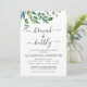 Brunch e Bubble Champagne Greenery Botanical Watercolor Convites de chá de panela da primavera em fundo branco - inclui uma bela e elegante tipografia com folhas botânicas modernas e verde para a celebração especial Bride Be.