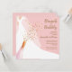 Os convites de chá de panela de Brunch e Borboleta apresentam uma noiva no seu vestido e véu sobre um fundo cor-de-rosa com garrafa de vinho espumante, flauta de vidro e sequências de faux com seus detalhes em letras brancas quicas. **TIP: O tamanho quadrado EXIGE POSTAGEM EXTRA ou e-mail em um envelope de 5" x 7". MAIS cores e itens CORRESPONDENTES em nossa coleção.