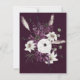 Design apresenta um elemento floral impresso em tons roxos, violetas, lilases e brancos sobre folhas de folhagem e pedras sobre um fundo de aquarela púrpura. Excelente para as comemorações do casamento!