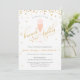 Celebre um aniversário, noivado ou chá com estes elegantes convites "Brunch & Bubble"! Apresentando um dourado confetti & script, e um copo de champanhe cor-de-água rosa. O dorso tem cor-de-rosa macio e pastel com design de confete de ouro. ** O aspecto da folha de ouro é apenas um efeito impresso - os cartões não sairão impressão com folha de ouro real! **