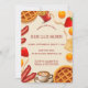 Este convite editável e lindo apresenta uma ilustração de vários itens de comida de brunch com as informações sobre o evento no meio. Os detalhes do evento são editáveis, então altere as informações junto com o estilo, tamanho e cor da fonte. No verso, há um campo editável para informações adicionais. A cor do fundo no verso também pode ser alterada. Este convite versátil pode ser usado para brunch de clubes do livro, aniversários, café da manhã de casamento, aniversários, etc.