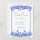 Este convite lembra a porcelana antiga e tempos mais simples. É um padrão que ecoa os padrões usados na porcelana inglesa fina e no stoneware. Múltiplos tons de azul são serenos e elegantes. O verso do convite repete o lindo padrão floral azul. Criado pela imprensa simplesmente de farmácia.