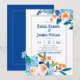 Convites Brunch Floral Floral Elegante Azul e Pêssego