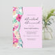 Convide seus amigos e família para um evento nobre informal, ao ar livre, com este papel rosa rasgado e aquarelas tropicais e florais. As flores são cor-de-rosa claro e amarelas com verde-menta.