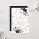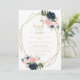 Este brunch geométrico dourado com o convite ao chá da noiva é perfeito para um chá de casamento rústico. O design apresenta belas flores azuis escuras pintadas manualmente, azuis, marinhos, cor-de-rosa, pinceladas, douradas e folhagem verde, enfeitando um quadro geométrico.