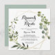 Este brunch geométrico de ouro com o convite ao chá da noiva é perfeito para um chá de casamento tropical. A design apresenta lindas folhas verdes pintadas à mão, enfeitando um quadro geométrico dourado.