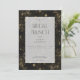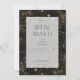 Este simples design apresenta pulverizações de falso brilho metálico dourado sobre um fundo preto macio, com uma caixa de texto branca transparente para que a beleza do design floral permaneça livre de obstáculos. Moderno e moderno. Criado pela imprensa simplesmente de farmácia.
