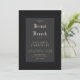 Elevem seu chá de panela a um nível de encanto negro e romântico com nosso convite inspirado no Gótico. Este belo design ostenta um fundo preto incrivelmente bonito com um simples quadro azul escuro flutuante ao redor de uma caixa de texto de cinza escura. Este design capta a essência do fascínio gótico, definindo o tom perfeito. Seus convidados serão encantados pela beleza mística e cativante desses convites. Criado pela imprensa simplesmente de farmácia.